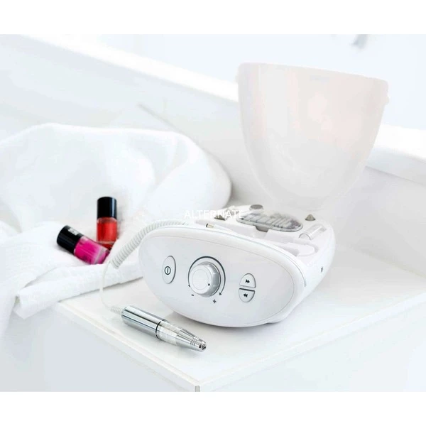 La machine de manucure et de pédicure MP 100 vous permet de prendre soin des ongles et des pieds à la maison. Il y a 10 accessoires en saphir durable ou en feutre de polissage. Avec le contrôle de vitesse infiniment variable et la rotation dans le sens horaire / antihoraire, des soins professionnels des pieds et des ongles sont possibles, ce qui n’est autrement concevable que pour le podiatre. Tous les accessoires peuvent être facilement intégrés dans l’étui de rangement pratique du MP 100.