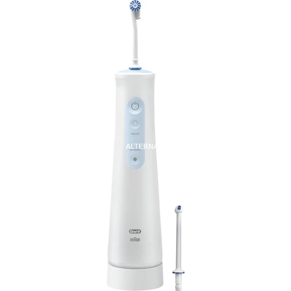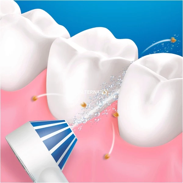 Le rince-bouche sans fil Oral-B AquaCare 6 Pro-Expert avec technologie oxyjet enrichit l’eau en micro-bulles d’air, améliorant ainsi la santé des gencives. Il suffit de maintenir le jet d’eau dans les espaces interdentaires et le long de la ligne des gencives pour éliminer tout résidu restant. Vous avez la possibilité d’activer le jet d’eau uniquement lorsque cela est nécessaire. Le rince-bouche dispose de 4 modes de nettoyage. Il est possible de choisir l’intensité de l’eau pour un nettoyage normal ou sensible à l’aide du jet d’eau ciblé ou rotatif.