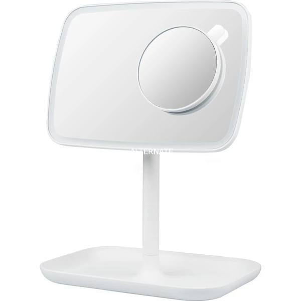 Le miroir cosmétique ILLUMINATED CM 848 assure des conditions d’éclairage optimales avec un éclairage annulaire uniforme composé de 33 LED blanches ultra-lumineuses. Grâce à un miroir grossissant magnétique détachable, deux surfaces de miroir avec un grossissement normal et 10x sont créées. À l’aide d’un capteur tactile, la lumière peut être atténuée de manière flexible. Le CM 848 offre un grand plateau de rangement pour les ustensiles de maquillage et les bijoux.